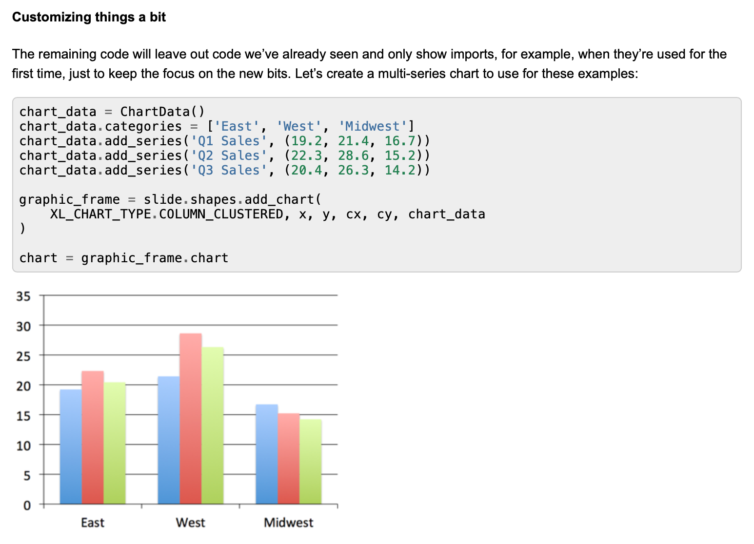 Below is a screenshot from the documentation showing how to make charts in pptx.